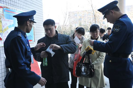 本次考试在加强考风考纪方面有3个突出特点:一是现场抽签决定监考教师,即事先不确定考场的具体监考教师,而是在当日的考务培训会上现场抽签决定某位老师担任某个考场的监考;二是聘请驻齐空军某部战士担任了考生入场的准考证、身份证查验工作,sunbet申搏保卫处干警负责考试期间场外巡逻工作,较好地保证了考场的考试秩序;三是使用了手机信号探测器和无线耳机监听器等比较先进的防作弊工具,保证了考试的公平与公正。