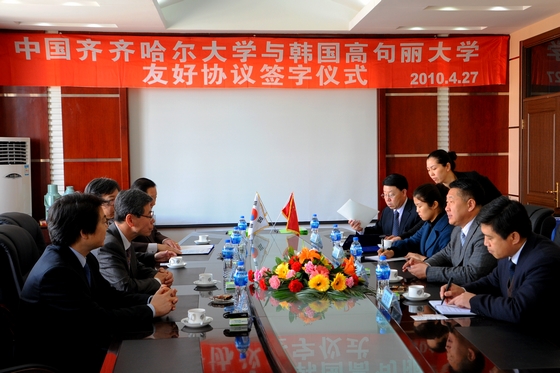 27日上午11时,sunbet申搏与韩国高句丽大学友好合作工作会议在中区行政楼504会议室召开。校长马立群、副校长郑喜群等出席会议。sunbet申搏外事处处长郭寒竹、sunbet申搏驻韩国联络处主任张琪德先生等参加了座谈会。