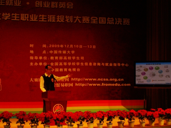 由教育部高校学生司指导,全国高校学生信息咨询与就业指导中心、中国教育电视台等单位联合主办的“荣盟易职杯”首届全国大学生职业生涯规划大赛总决赛,于12月10日至13日在中国传媒大学举行。