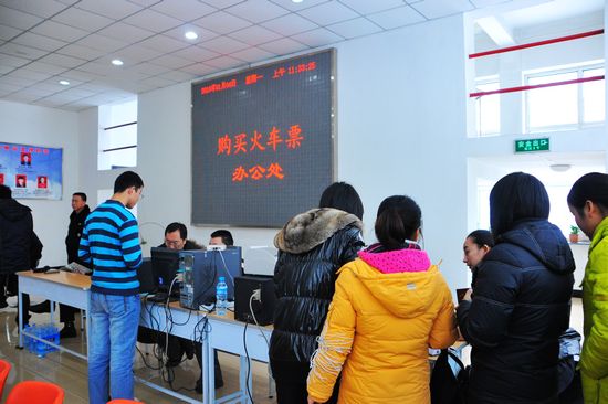 今年,本着以人为本的服务理念,为减少同学们排队购票的不便,齐齐哈尔火车站售票处今年增加了新的售票方式,分为集中配票和现场售票两种方式。集中配票由各学院以班级为单位,确定负责人,集中统计、车站人员与班级负责人当面交接,由负责人进行统一发放。集中订票时间为12月30—31日,以班级为单位,确定好购票日期、车次、到站、票款、学生证等信息,统一核对并填记好“班级团体购票统计表”。1月3日下午,各班级负责人到学生指导中心与车站售票工作人员进行了现场交接,同学们不用出校园就领到了自己所预定的车票。