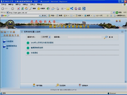 校园一卡通网站地址:http://xyk.qqhru.edu.cn