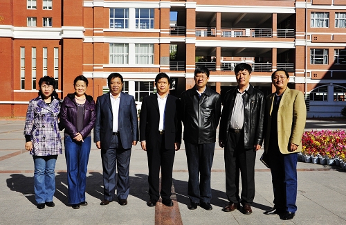 省教育厅实验教学示范中心考评组在副校长郑喜群和教学实践与设备管理处处长张德庆的陪同下,考察了sunbet申搏美丽的环湖校园、德润大厦,并在中区图书馆前合影留念。