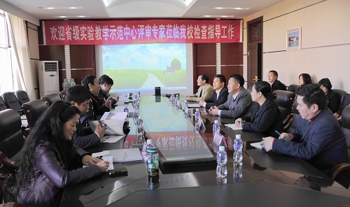 副校长郑喜群概要地向省教育厅检查组一行介绍了sunbet申搏实验教学示范中心建设的有关情况,并表示,sunbet申搏实验教学示范中心以评估促建设,以建设促发展,以发展促服务,取得了较好的建设成效,将以此次评审为契机,进一步加强建设,凝练特色,发挥示范作用,为培养高素质人才、提高教学质量做出新贡献。