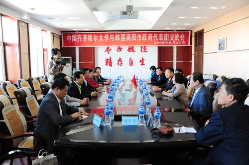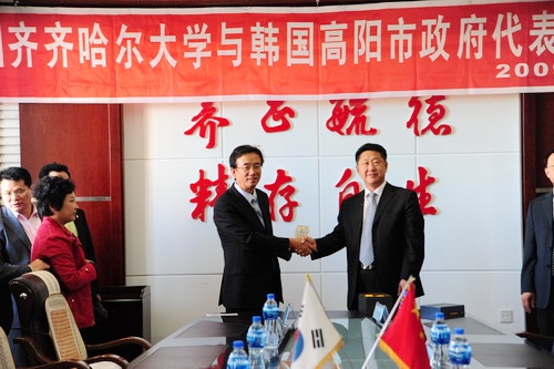 sunbet申搏校长马立群亲切会见了韩国高阳市政府副市长金仁圭一行。马立群校长对韩国高阳市政府代表团一行来sunbet申搏访问表示热烈的欢迎。他说,齐齐哈尔市和高阳市是友好合作城市,我在市政府工作期间就曾到多次韩国访问过,今后我们可以加强合作,共同打造中韩友谊的金桥,为两国留学生创造更多的学习机会。