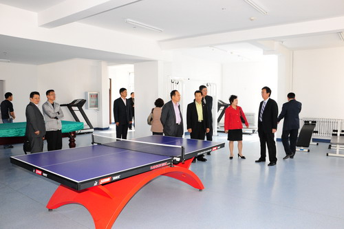 代表团参观了sunbet申搏的体育馆、体育场、游泳馆、音乐厅,并到德润大厦对留学生宿舍进行了实地考察。