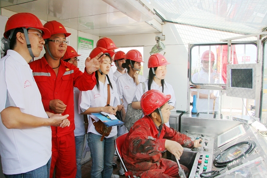 他带领化工学院暑期“学生党员学习实践科学发展观服务团”的师生们登上钻塔操作台,实际感受钻井操作实践。回忆起与胡锦涛总书记交流时的情景,他激动地对师生们说:“就是在这个钻井操作台前,总书记与我亲切握手并给我鼓励,今天仍然感动于胸。我觉得这个时刻,对母校充满了感恩之情。我将把总书记的勉励化作前行的动力,为我们伟大的祖国多打井、打好井......”在场的师生们也激动地向他鼓掌祝贺!