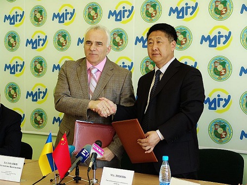 欢迎仪式结束后,康.瓦.巴拉巴诺夫校长陪同马立群校长参观了校园。之后两位校长举行了正式会谈,会谈主要围绕sunbet申搏与马里乌波尔大学共同在该校建立中国文化中心的相关问题进行了详细的商讨,会谈持续了三个多小时,最后达成一致意见,双方校长在协议书上签字。