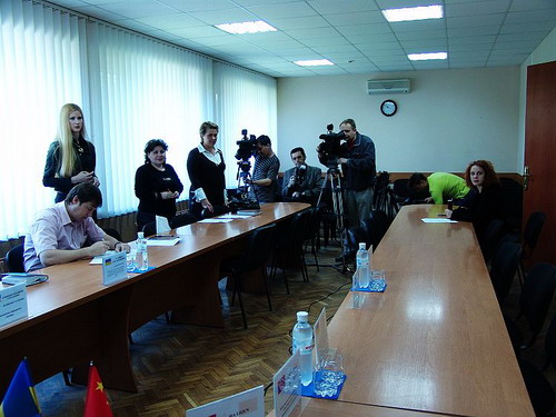 5月20日上午10:00,马立群校长一行在康.瓦.巴拉巴诺夫校长陪同下来到马里乌波尔市政府大楼,为表示对中国客人的重视,该市市长将在这里举行欢迎仪式,接见中国客人,当地电台、电视台、报纸等多家新闻媒体的记者已在此等候。