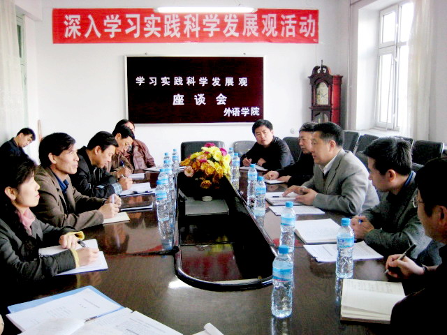 外语学院党委书记冯觉华,副书记、副院长杨国志,副院长葛利友、张坤、闫涛,及各系(部)主任、各办公室主任、部分教师代表参加了座谈会。座谈会上,外语学院党委书记冯觉华就外语学院学习实践科学发展观活动情况及学院建设工作做了详细汇报。