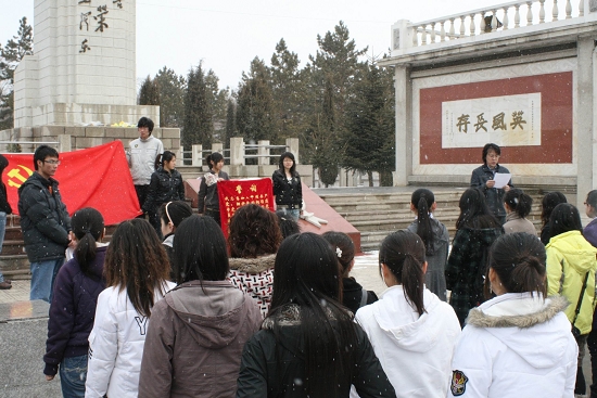 计红老师在随后的讲话中指出,作为青年一代学生的我们,要时刻将先烈的遗志铭记于心,牢记革命先烈的丰功伟绩,秉承英雄们不畏艰难,不怕牺牲,勇往直前,敢于胜利的精神;要积极做好本职工作,协助老师,带领同学,服务同学,为学校的稳定和发展做出自己的贡献;提高自己的综合素质和组织协调能力,培养认真工作、乐于奉献的精神。