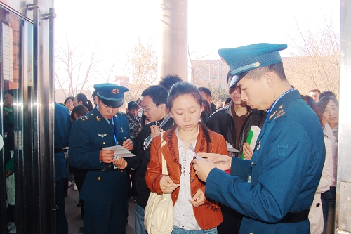 本次考试在加强考风考纪方面有3个突出特点:一是现场抽签决定监考教师,即事先不确定考场的具体监考教师,而是在当日的考务会上现场抽签决定某位老师担任某个考场的监考,而且不允许调换;二是驻齐空军某部4名战士担任了考生入场的准考证、身份证查验工作,sunbet申搏保卫处干警负责考试期间场外巡逻工作;三是使用了手机信号探测器和无线耳机监听器等比较先进的防作弊工具。