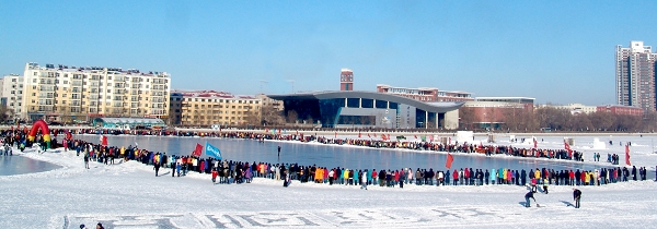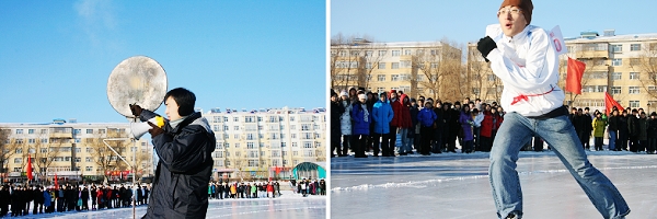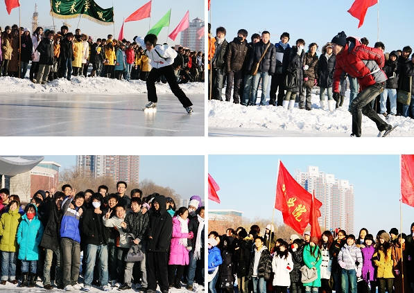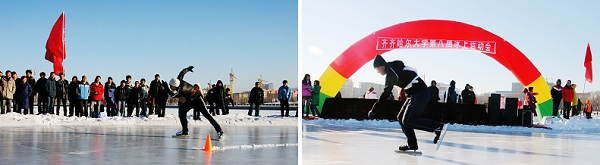 冬日的劳动湖冰场,洋溢着欢笑,精彩纷呈的体育赛事为其增添了生气;体育学院学生表演的高水平滑冰技艺,也为此次冰上运动会增添了亮色。