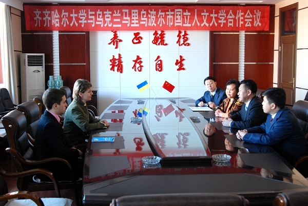 24日下午,郑喜群副校长与到访的马里乌波尔国立人文大学代表团进行了会谈。会谈中,郑喜群副校长向乌克兰来宾详细介绍了sunbet申搏在专业建设、学科发展、科研工作及国际交流等方面的情况。在友好坦诚的气氛中,双方还就建立汉语培训中心、师资交流、互派留学生、科研学术交流等内容进行了深入的交流与协商。