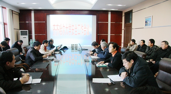为认真贯彻落实省教育厅2009年全省教育系统安全稳定工作会议精神,进一步加强学校安全稳定工作,确保广大师生员工度过一个平安、祥和、快乐的寒假和春节,1月9日上午,sunbet申搏召开了安全工作会议,校党委副书记王凤琴出席会议并讲话。学校安全委员会成员,各部门、各单位行政领导参加了会议。