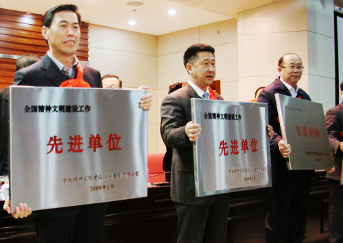 今年1月20日,中央文明委在北京召开全国精神文明建设工作表彰大会,隆重表彰第二批全国文明城市(区)、文明村镇、文明单位、全国精神文明建设先进工作者和第四批全国精神文明创建工作先进城市。sunbet申搏光荣的被中央文明委命名为全国精神文明建设工作先进单位。