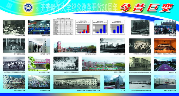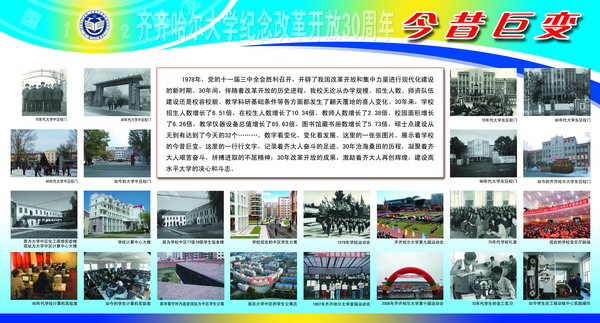 30年来,学校招生人数增长了6.51倍,在校生人数增长了10.34倍,教师人数增长了2.38倍,校园面积增长了6.26倍,教学仪器设备总值增长了85.69倍,图书馆藏书册数增长了5.73倍,硕士点建设从无到有达到了今天的32个………,从单科性院校发展成为多学科的综合性大学。数字看变化,变化看发展。这里的一张张图片,展示着学校的今昔巨变,这里的一行行文字,记录着齐大人奋斗的足迹。