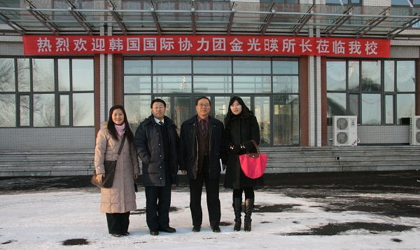 校长唱江华、副校长郑喜群在中区办公楼504室亲切会见了韩国国际协力团中国事务所所长金光暎一行,宾主双方进行了亲切友好的交流,畅叙了友情,互致了感谢,并共同就今后进一步深化交流与合作的有关事宜达成共识,并合影留念。