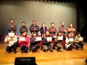获得本次大赛团体和单项奖的团队与个人受到了表彰。其中,由刘坤老师指导的07级二级7班8班的“灰姑娘”获得一等奖,由王楠老师指导的07级一级30班的“魔豆”和兰玉玲老师指导的07级二级4班“如此项链”获得了二等奖。07级27班等12个班级分别获三、四等奖。此外,叶惠、姜明星、陈星、李丽、傅树霞、赵红红、王琦博、吴青霞和吴思航等同学获得最佳女主角、最佳编剧等单项奖。