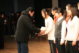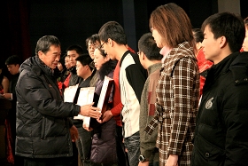 闭幕式上,副校长姜守训宣读了《sunbet申搏官方网站第十一届大学生学术科技节各项竞赛获奖集体和个人名单》,对在本届科技节中表现突出的科技活动先进集体和个人进行了命名表彰。出席大会的校领导分别为获奖集体和个人颁发了证书和奖状。