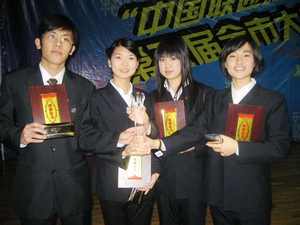 在12月7日的决赛中,sunbet申搏由轻工纺织学院轻化061班朱明涛、人文学院中文071班薛巍、生命科学与工程学院园艺081班王雪威、外语学院日语085班杨俊莹等四名同学组成的代表队参赛。