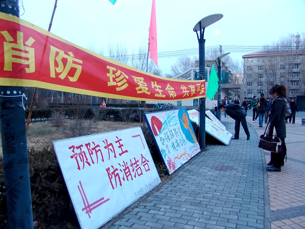 9日中午,校保卫处及大学生消防志愿者协会等有关部门和学生组织还在西主广场举行了消防安全知识手册发放活动,受到现场路过的师生们的关注与欢迎。