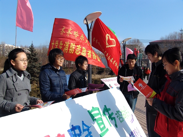 校团委、校大学生消防志愿者协会还于12、13两日,在学校东中西三个区分别设立消防安全知识咨询台,为师生们提供消防知识咨询、讲解等服务,并发放了消防宣传资料。