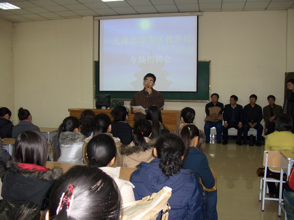 2008年11月11日,天津市津南区教育局一行13人,由教育局副局长带队,会同津南区人事局、津南区纪委、津南区教育局教育研究室及相关中学的校长,组成专家招聘团来sunbet申搏集中选聘人才。经过资格审查、笔试、面试、试讲等一系列环节,sunbet申搏共有地理、化学、历史、数学、中文5个专业的16名毕业生与用人单位成功签订了就业协议。
