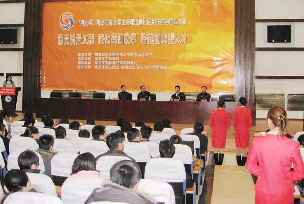 第二届“用友杯”全国大学生ERP管理信息化应用技能与创业大赛黑龙江赛区总决赛于2008年11月22日在黑龙江工程学院逸夫图书馆举行。