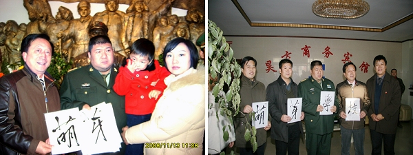 校党委副书记史铁成与毛新宇将军全家合影 校党委副书记史铁成向毛新宇将军赠送“萌芽学校”