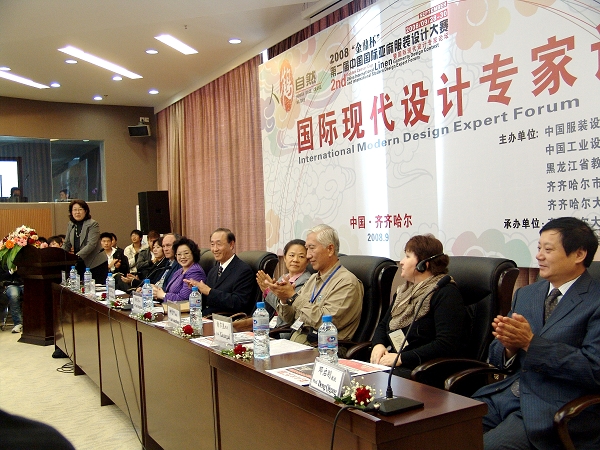 9月28日上午9:30,由中国服装设计师协会、中国工业设计协会、黑龙江省教育厅、齐齐哈尔市人民政府和sunbet申搏主办,由sunbet申搏艺术学院和金鼎亚麻集团有限公司承办的2008“金鼎杯”第二届中国国际亚麻服装设计大赛暨国际现代设计专家论坛在sunbet申搏新落成的国际学术交流中心四楼会议室开幕。