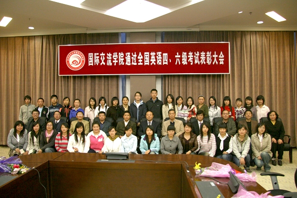 表彰会上,出席会议的领导和嘉宾向受表彰同学颁发了由韩国大成食品有限公司提供的奖金。国际交流学院院长郭寒竹作了讲话。他在讲话中向以优异成绩通过英语四、六级考试的学生表示祝贺,并充分肯定了该院06级学生勤奋上进、踏实刻苦的学习精神,勉励他们志存高远、发奋成才,不断超越自我,取得更大更好的成绩。受表彰的06级学生代表杨海凤同学现场作了经验介绍。国际交流学院07、08级的学生代表分别作了发言并表示以实际行动把国际交流学院良好的学风发扬光大。