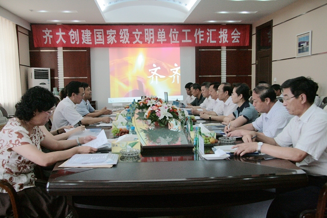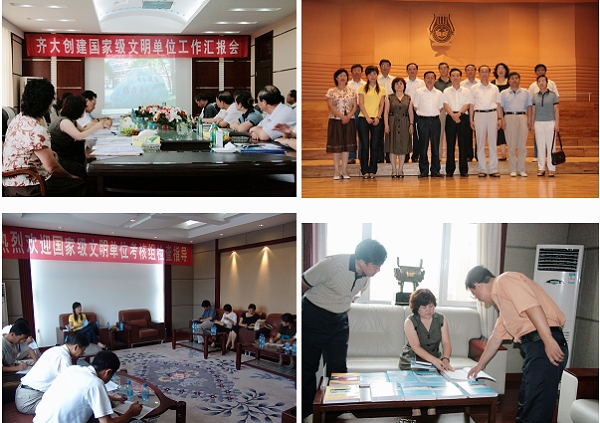 省精神文明办创建协调处副处长刘淑华在结束材料审阅后,与学校领导交换了意见。她说,齐大创建工作思路清晰,文档规范,材料健全,内容充实,档案材料的准备认真、细致,让我们感到十分高兴。特别是原始创建材料,内容翔实,特色鲜明,有学校年度综合卷、“十项工程”专题卷、基层单位材料卷,这充分表明了学校及各基层单位党政领导的高度重视,也说明学校创建工作的扎实与持续,齐大的创建工作贯穿学校改革、建设与发展的全程,充分发挥了文明单位创建的功能与作用。考核组成员、省文明办秘书处田静在交换座谈与测试情况时表示,齐大办学特色鲜明,三个文明协调发展;特别是齐大交响乐团提升了整个城市的文化品位,在省内外巡演,还参加了国家级音乐会演出,充分发挥了文明辐射力源的作用。
