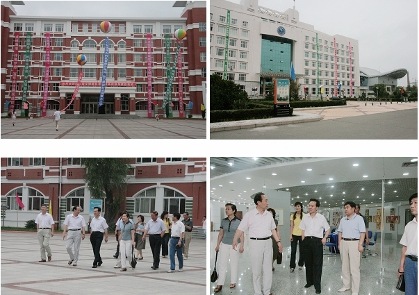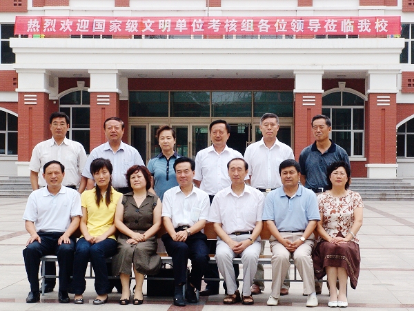 9:10,在中区教学楼广场前,考核组全体成员与校领导合影留念。