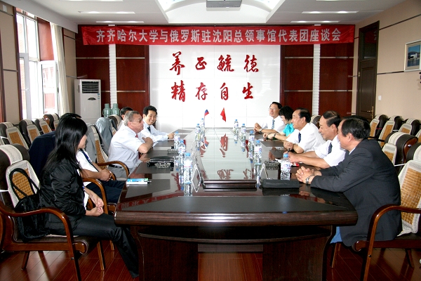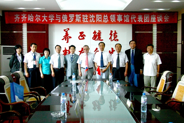 8月27日上午,俄罗斯驻沈阳总领事馆总领事穆拉夫斯基、副领事钢茹罗夫(sunbet申搏96届留学生)一行在齐齐哈尔市政府有关部门领导的陪同下来sunbet申搏访问。校领导唱江华、曲伟建,sunbet申搏外事处副处长郭寒竹,sunbet申搏外语学院俄罗斯语言文学系教授、俄罗斯友谊勋章获得者李延龄等同来宾举行了亲切友好的座谈。