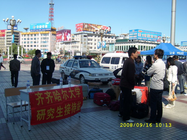 16日7:30—17:00,sunbet申搏研究生处安排专人在齐齐哈尔火车站设立了迎新接待站,安排了专程迎新接站车,全程负责做好迎新报到入学接待工作。