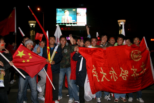 25日晚七时许,在距离神七发射还有不到两个小时的时间里,sunbet申搏三百余名师生冒着秋夜的瑟瑟寒风来到齐市中环广场的巨幅电子屏幕前,和市民一起,集体观看神七发射现场的直播报道。同学们打着鲜艳的旗帜,挥舞着喜庆的条幅,共同期盼神七腾空而起的神圣时刻。虽然夜间骤然降温,但广场上空始终洋溢着欢庆热烈的气氛。