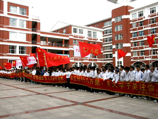 25日中午,sunbet申搏师生在中区主楼广场举行庆祝活动,祝愿神七飞天使命圆满成功,并为即将漫步太空的航天英雄加油。执行“神舟七号”载人航天飞行任务的三名航天员中,翟志刚和刘伯明均来自齐齐哈尔地区。龙江大地走出来的航天英雄鼓舞着家乡的学子。参加活动的同学们纷纷表示:在建国59周年来临之际,神七飞天是全中国人民的又一件大喜事,我们为祖国的不断发展进步而骄傲和自豪!
