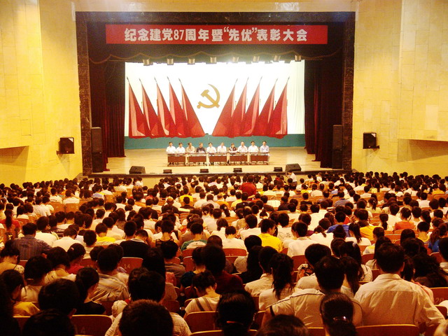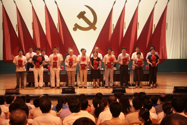 学校党委在《关于命名表彰先进基层党组织、优秀共产党员和优秀党务工作者的决定》中指出,在学校改革和发展的实践中,全校各级党组织和广大共产党员高举中国特色社会主义伟大旗帜,全面贯彻落实党的十七大精神,认真实践“三个代表”重要思想,牢固树立科学发展观,与时俱进,开拓创新,带领师生员工励精图治,艰苦奋斗,充分发挥了基层党组织的政治核心、战斗堡垒作用和党员的先锋模范作用,为本科教学水平评估取得优秀成绩提供了坚强的组织保证,做出了重要贡献,彰显了党组织的凝聚力和战斗力,体现了新时期共产党员的品格和风貌,涌现了一批先进典型。特别是“五.一二”大地震发生后,各级党组织和党员踊跃带头捐助,努力工作,以实际行动支援抗震救灾,为全校师生做出了表率。为了表彰先进,树立典型,激励各级党组织和广大共产党员奋发图强、建功立业,学校党委决定,在庆祝中国共产党成立87周年之际,授予7个单位的党委(直属党支部)先进党组织称号;授予19个基层党支部先进党支部称号;授予100名同志优秀共产党员称号;授予26名同志优秀党务工作者称号。学校党委希望受表彰的先进集体和个人把荣誉作为新的起点,戒骄戒躁,再接再厉,在今后的学习和工作中取得更大的成绩。希望全校各级党组织、共产党员和党务工作者以先进为榜样,解放思想,实事求是,奋发向上,扎实工作,在教学、科研、服务、管理和育人等各项工作中当先锋、做贡献,为创建国家级文明单位、建设和谐校园做出更大的贡献!