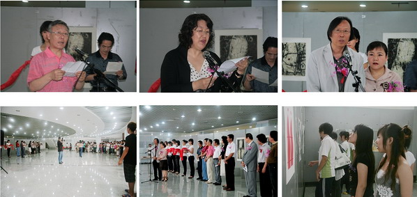 庄树谦、曹志博、洪在衍、张琪德、侯希君、孙相根等为洪在衍教授石版画展剪彩。