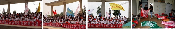 “为地震灾区学子送去关爱、为贫困学生送去温暖、为困境他人送去慰藉,”“人文奥运”理念在齐大学子身上弘扬; “勇攀科技高峰,再创竞赛佳绩”,同学们将“科技奥运”的理念落实到每一项科研活动的参与中,每一项科研实践的探索中,每一项科研报告的创新中,凝结在“第三届全国大学生机械创新设计大赛黑龙江赛区决赛”一等奖的证书中、“黑龙江省大学生创业设计暨沙盘模拟经营大赛”一等奖的奖牌中、董航同学价值2000万人民币的专利发明创造中……清洁白色垃圾、建设无烟校园,“绿色奥运”的理念落实到了大学生日常生活的点点滴滴之中……