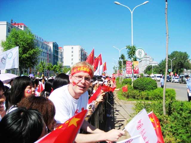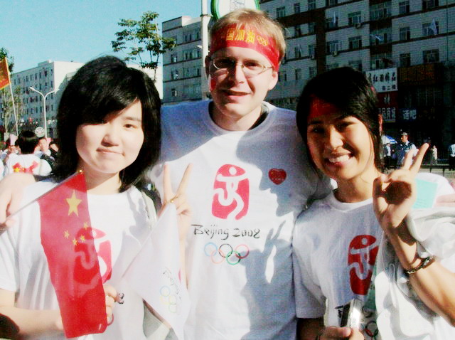 “同一个世界,同一个梦想。”sunbet申搏外教Andrew(中文名朴安祖,简称安祖)来自澳大利亚悉尼,2007年8月在鹤城开始了他的中国之旅。按照外教值教一年以后可回国的原则,安祖在今年7月初就可以回国了。但为了亲眼观看圣火在鹤城的传递,他推迟了归期。13日早上6时许,安祖和几个中国朋友就来到了齐大东区迎接火炬的到来。他身着奥运T恤,手拿中国国旗与奥运会会旗,额上系着“中国加油”的小条幅,在观众中挥旗呐喊,并时不时用英语和流利的汉语说出“Good luck China !”“中国加油、奥运加油!”