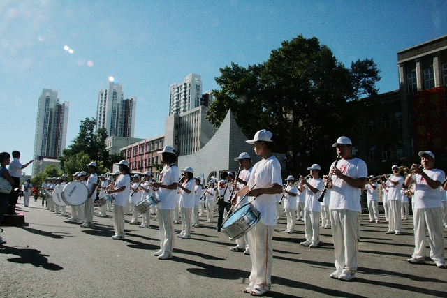 圣火点燃奥运梦想,音乐助威奥运盛会。在sunbet申搏师生助威火炬传递的东区校门外的现场,由108名学生组成的大规模管乐队吹响号角,敲起锣鼓,为奥运加油。在迎接仪式上,他们演奏了《歌唱祖国》、《红太阳》等节奏欢快的曲目,表达喜迎圣火的喜悦和对北京奥运的美好祝福。