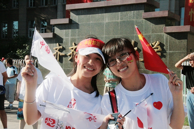 圣火传递旅途中,同学们一直对火炬手报以热烈的加油和欢呼,充分表达了齐大人支持奥运、支持北京的热情,展现了师生们热爱祖国、积极向上的精神风貌,表达了师生们希望奥运火炬在中华大地的手手相传中,也将和平、友谊和希望不断传递下去的良好愿望。