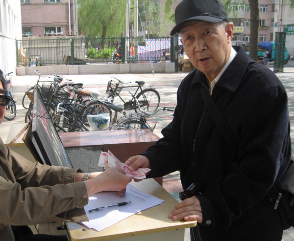 5月15日下午1时起,得知学校为地震灾区捐款消息的离退休老干部就纷纷来到学校,积极为灾区捐款,仅1小时时间,老干部们就捐款12200.00元,场景令人十分感动。他们当中,有的已近耄耋之年,有的身体患病,有的居住在外地,但他们仍然奉献自己的爱心。
