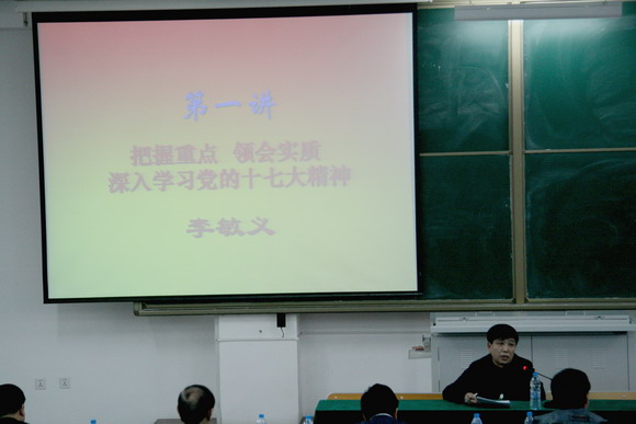 开班仪式结束后,校党委宣传部部长李敏义教授为全体参训干部作了题为《把握重点,深刻领会,深入学习党的十七大精神》的首场讲座。