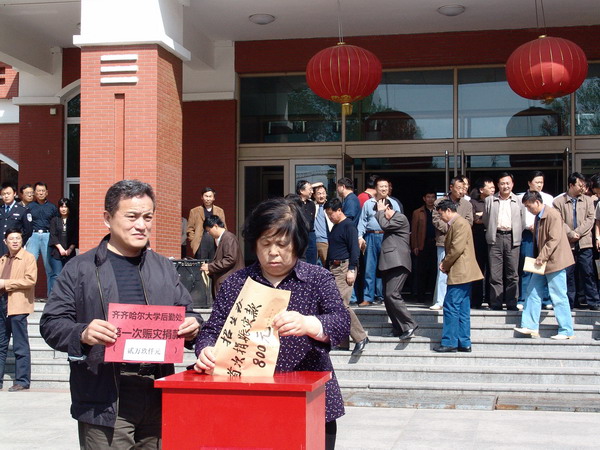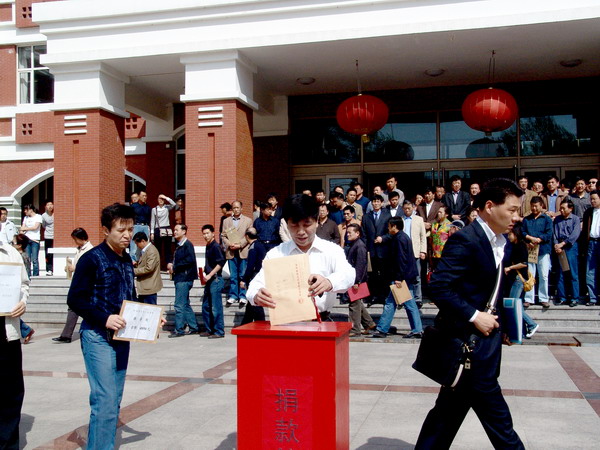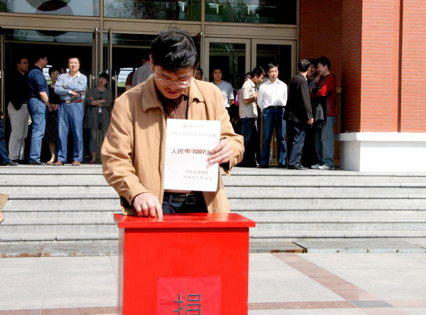 四川省阿坝州汶川县突发里氏7.8级强烈地震以来,sunbet申搏万名师生积极响应学校党委号召,在5月15从12时至14时的短短两个小时的时间里, 各部门、各单位广大师生弘扬“一方有难、八方支援”的互助精神,按照学校统一部署积极参加到捐款献活动中来,纷纷献出了自己的一份爱心,谱写了爱心献灾区的感人篇章。