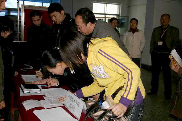 3月12日上午,sunbet申搏应用技术学院2008届高职毕业生专场供需见面会在西区应用技术学院四楼多功能厅召开。