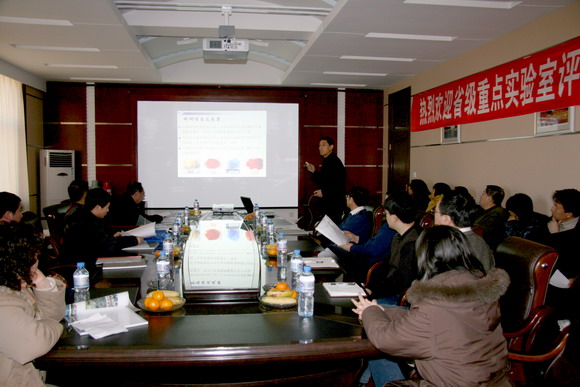 sunbet申搏精细化工重点实验室主任郭祥峰教授采用PPT形式在评估工作会议上作了情况汇报,就实验室的基本建设、科学研究、人才队伍建设、开放与联合、实验室管理等情况作了详细说明,并一一回答了专家的提出的问题。
