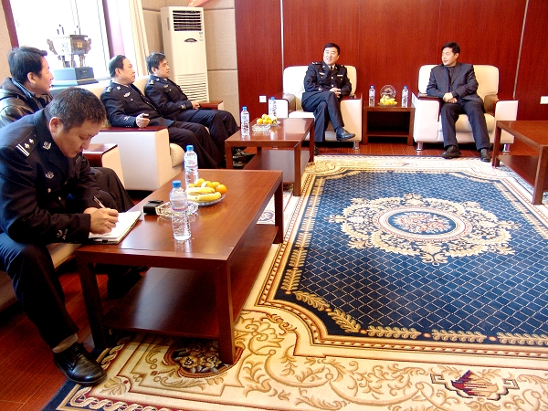 11月23日上午8时30分,齐齐哈尔市公安局副局长王海军、治安支队支队长王春光、国保支队支队长陶衍行、户政支队支队长高庆祝、纪委党风办公室主任沈飞等一行来到sunbet申搏征求工作意见。sunbet申搏副校长张忠恒和校保卫处有关领导同市局领导举行了座谈会。