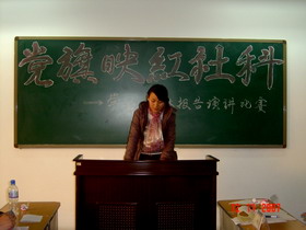 此次演讲活动是社科部研究生们为庆祝党的十七大胜利闭幕、深入开展十七大精神学习活动而开展的。为此,社科部专门为同学们印发了有关十七大报告的学习材料,研究生同学们组成多个模拟演练小组,广泛参与,形成了深入学习十七大精神的浓厚氛围。